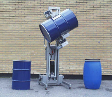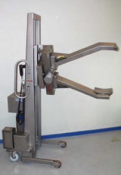 Der MiniLift E 300 basiert auf der Doppelmast- Modellvariante. Mit stabilisierten Komponenten, komplett aus Edelstahl sowie größerem Motor erreicht er eine Tragfähigkeit von 300 kg! Hier auf den Bildern dargestellt mit elektrischer Klemm- und Drehvorrichtung für das problemlose Handling von Fäßern. Adere Hebekomponenten leicht montierbar.