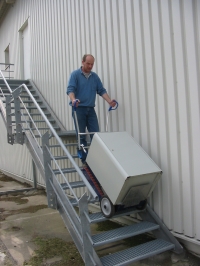 Treppensteiger für die Erleichterung schwerer Transporte auf schmalen und steilen Treppen. Der Treppensteiger fährt auf zwei Treibriemen für erhöhte Stabilität und macht die Arbeit für Sie leichter und schneller. Der verzahnte Treibriemen greift auf Holz- wie auf Stahltreppen; ob trocken oder regennass. Tragfähigkeit T 150: 150kg Lassen Sie sich ein auf Ihren Aufgabenbereich maßgeschneidertes Angebot machen.